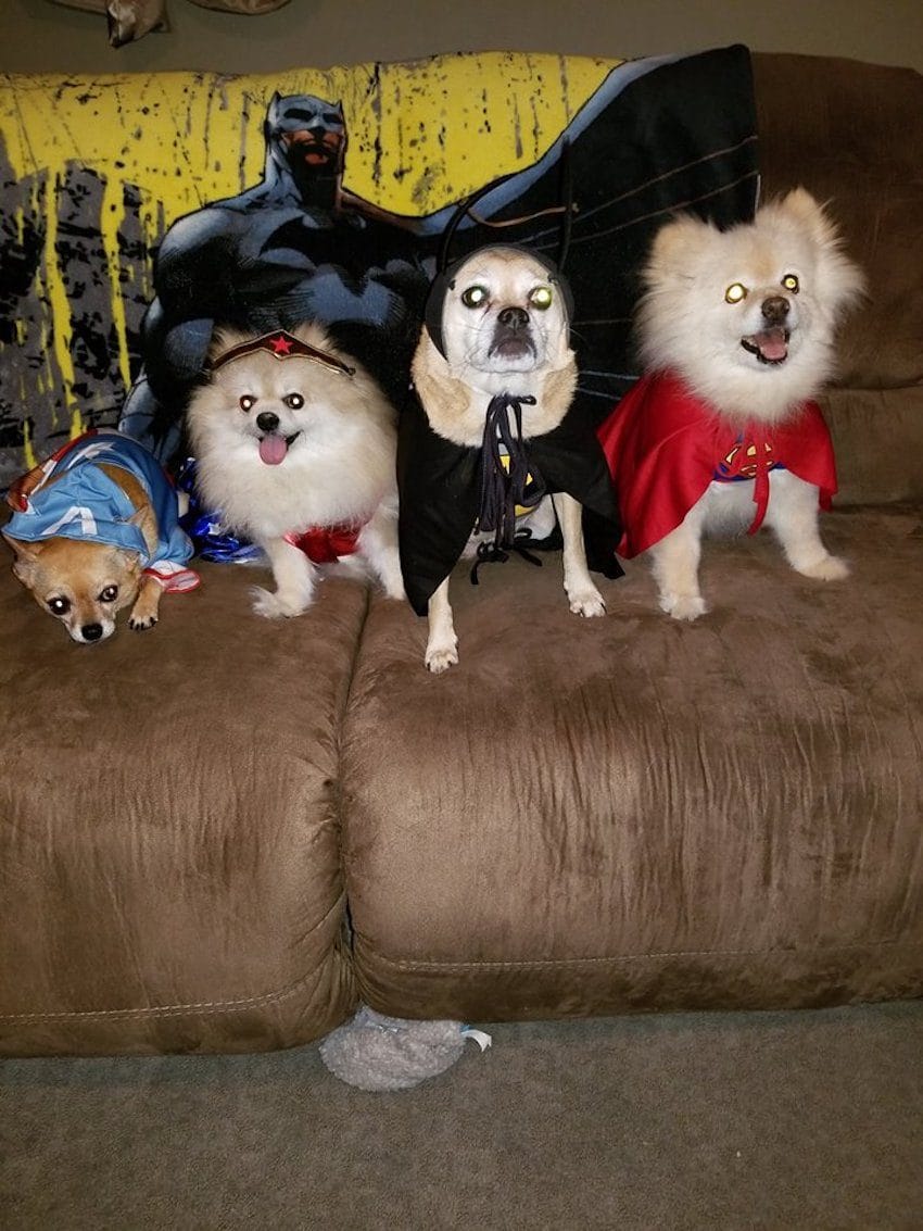▼他也會為家中的狗狗進行變裝,看看這些可愛的狗狗英雄們有多麼可愛!