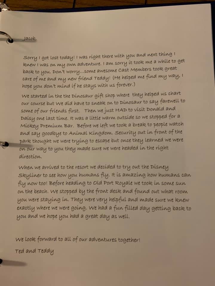 ▼Jacob的媽媽Allison Davis在臉書上分享了那天發生的事。當時Jacob在動物王國用一張禮品卡買了一隻綠色的翼龍公仔。他超愛這隻公仔,不僅取名為Ted,還一直帶在身邊。但Jacob到其他園區玩的時候,Ted竟然被偷走了。
