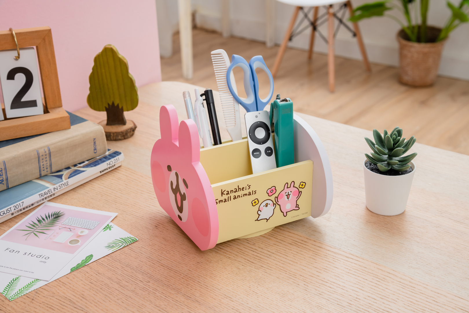 ▼物旋轉收納盒:使用360度旋轉底盤設計,讓桌面收納好方便,小東西大容量,可收納生活小物。療癒的P助與粉紅兔兔一次擁有,放在桌上光用看的就很relax。
