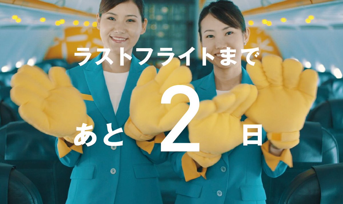 ▼香草航空的官方Twitter早在結束營運的19天前便開始倒數,用一張張親切笑臉的照片,希望能開開心心地迎接結束營運的那一天。(圖譯:離最後一班飛機班次還有2天)