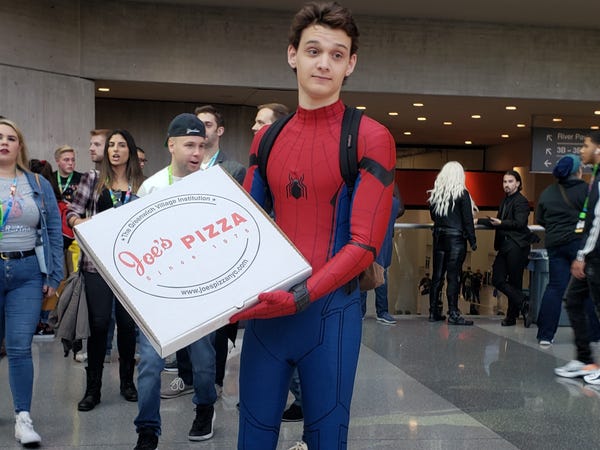 ▼送披薩的蜘蛛人。