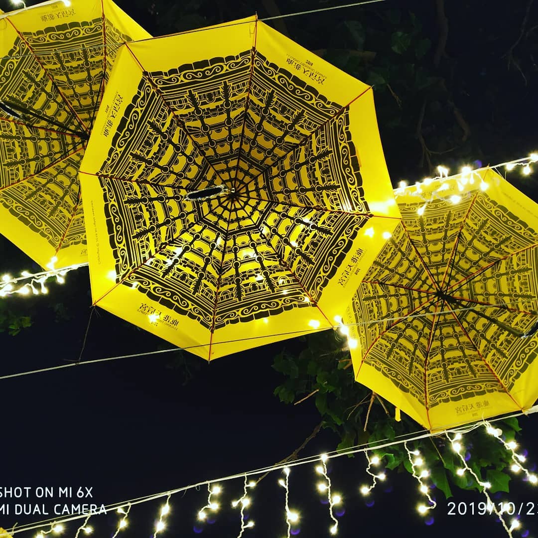 ▼為了延續觀光熱潮,當地舉辦了一系列活動和裝置藝術,這次順澤宮和鹿港天后宮和聯手合作,在附近的糯米風味坊掛上平安傘,到夜晚時金黃的平安傘配上暖暖燈光,景色相當迷人!