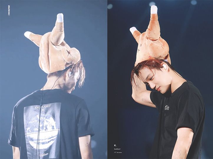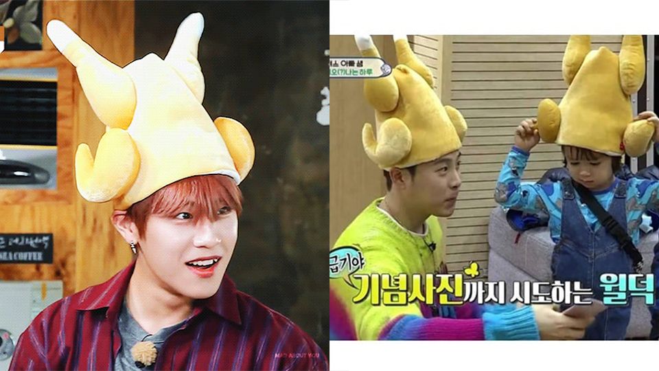 ▼之前很多明星就曾戴過這款帽子,比如EXO的燦烈跟Kai在演唱會上就曾戴著全雞帽出場;AB6IX的佑鎮跟Block B的P.O出演節目時也都戴過。