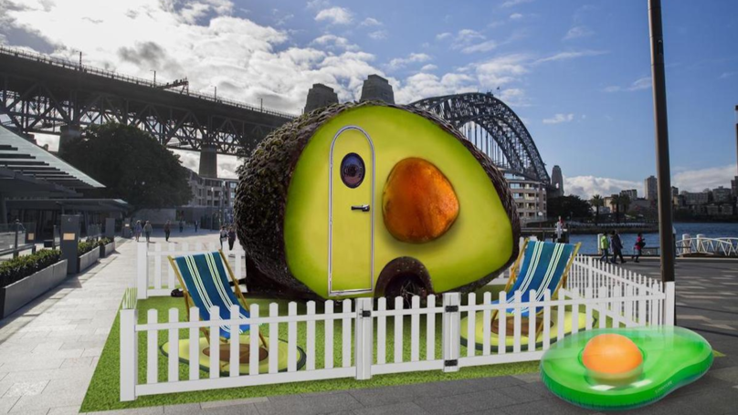 ▼這間酪梨主題小屋位於雪梨環形碼頭坎貝爾灣觀景台,最多能住2個人。小屋內充滿酪梨主題的裝飾,比如酪梨造型馬克杯、酪梨造型抱枕,就連床單上都印滿了酪梨圖案。最讓人驚喜的是,客人會收到一份專屬餐籃,裡面裝滿了酪梨主題的美食。