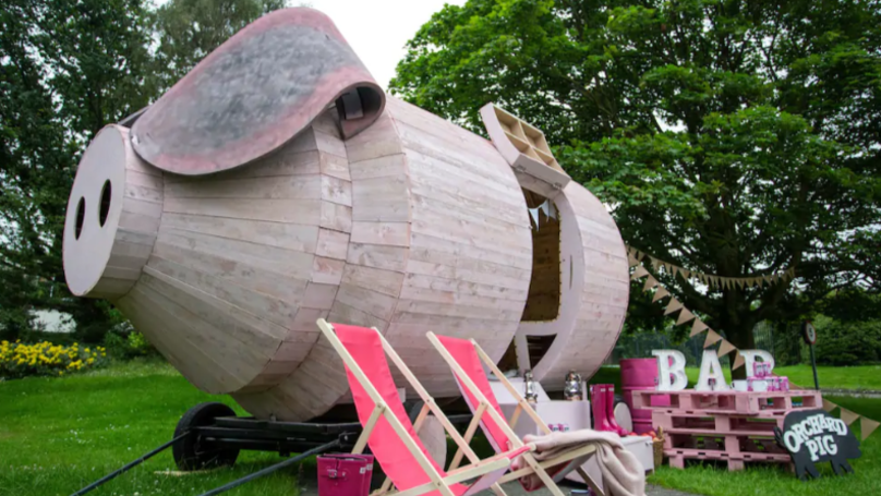 ▼如果你對主題小屋感興趣的話,還可以看看下面這個可愛小豬造型露營艙。這個木製粉紅小豬露營艙是蘋果酒公司「Orchard Pig」建造的,位於英格蘭布里斯托(Bristol),能夠容納12個人,裡面設施齊全,在Airbnb上能夠預訂。