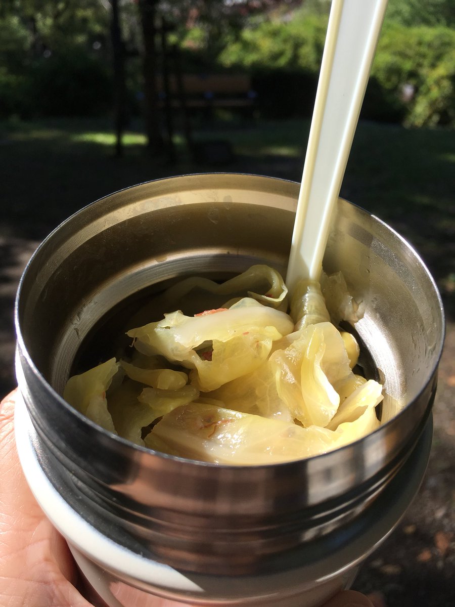 ▼她把這顆高麗菜帶回家後,立刻用它煮了一頓晚餐,但發現自己根本就吃不完!