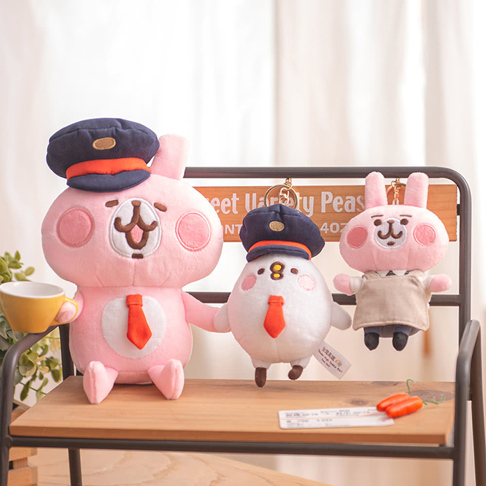 ▼兔兔&P助這次化身為高鐵列車長,戴上高鐵的帽子、穿上高鐵制服後,看起來專業度滿分呀~這次卡娜赫拉X高鐵共推出了多達13種商品,看看這款列車長造型娃娃,真的是可愛到融化呀~