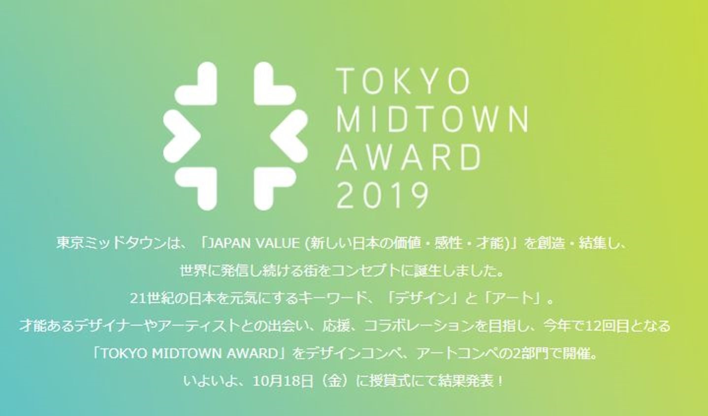 2019年11月05日大家聽說過日本藝術設計獎Tokyo Midtown Award嗎?這項比賽以富有藝術氣息的東京中城(Tokyo Midtown)來取名,聚焦「日本的新價值・情感・才能」,致力發掘與支援設計師、藝術家,不斷推出有格調、有創意的設計作品。