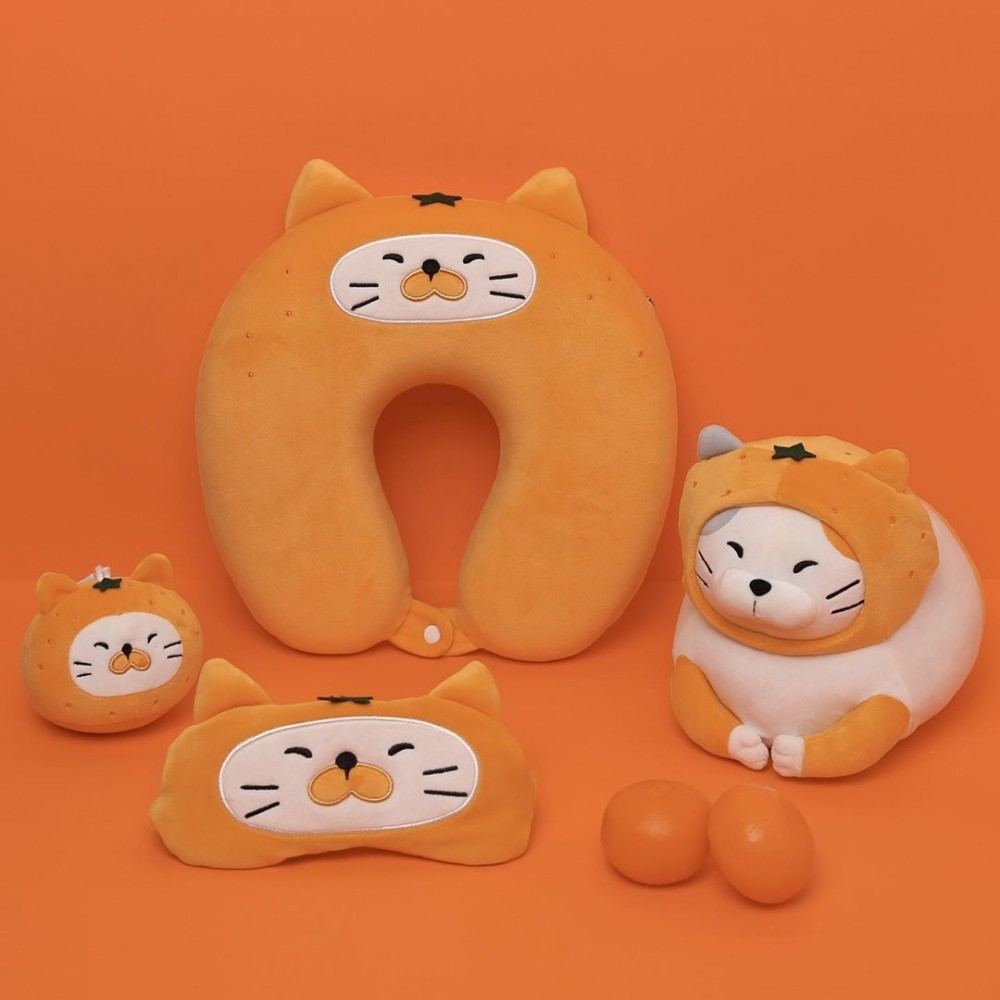 ▼橘子貓造型的頸枕和眼罩,讓貓咪可以陪著你一起到處旅遊!