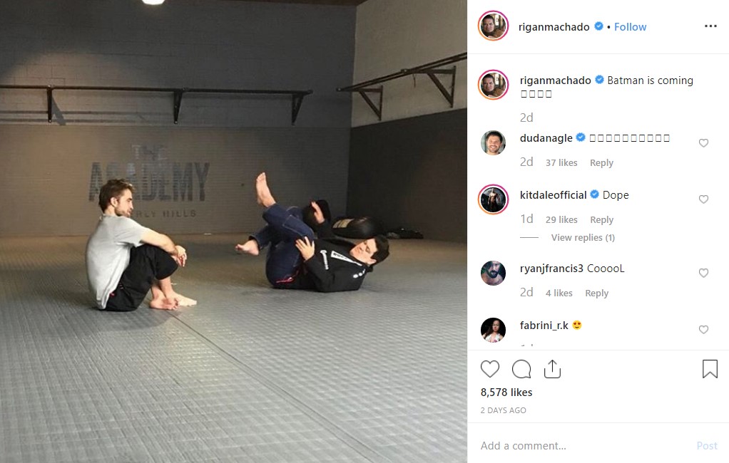 ▼巴西柔道冠軍Rigan Machado近日就曝光他指導羅伯派汀森各種武術動作的貼文,但是很快就疑似受到電影公司的壓力,已經把PO文刪掉了。