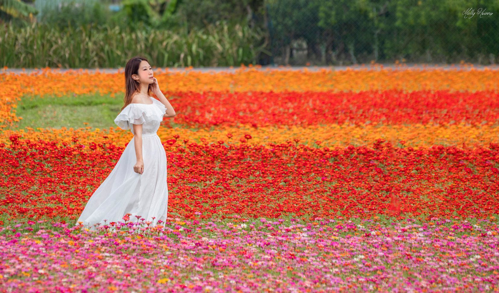 ▼在月眉一帶花田有20公頃,將原本的休耕田,變身成各式各樣的造型花毯,把花朵變成顏料,在大地上大筆揮灑,變成一幅幅美麗動人的花海美景!一望無際的波斯菊花田,壯麗程度絕對是來到現場才能感受到!