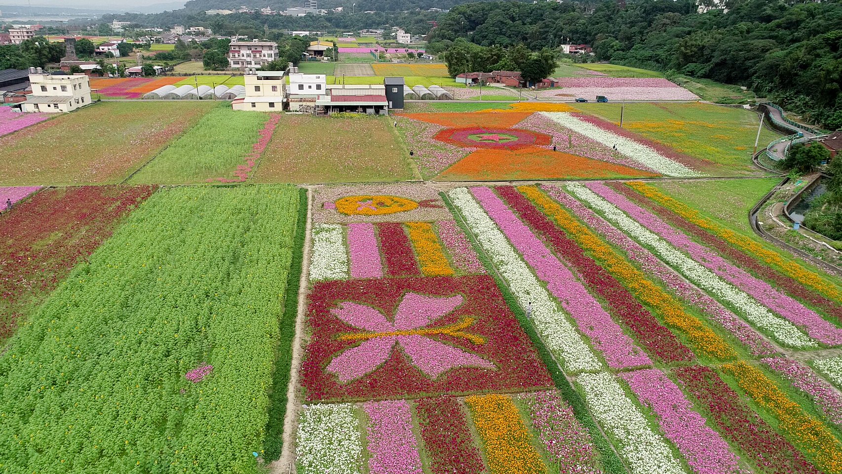 2019年11月11日每到秋冬之際,除了是落羽松轉紅的時節,許多花卉也在這時候大放異彩!桃園大溪區舉辦了「與花共舞 與農同樂」,從11/9-11/17在李騰芳古厝一帶,由農民設計出以花卉當作顏料的巨型地面繪畫花毯,台灣農民除了會照顧花卉,還很有藝術美感呢!