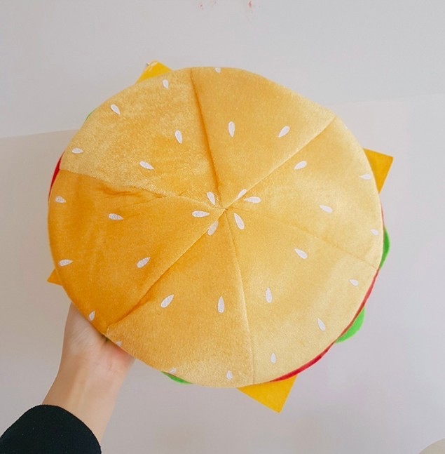 ▼灑滿了芝麻的漢堡貝蕾帽,宣告你對漢堡的愛!