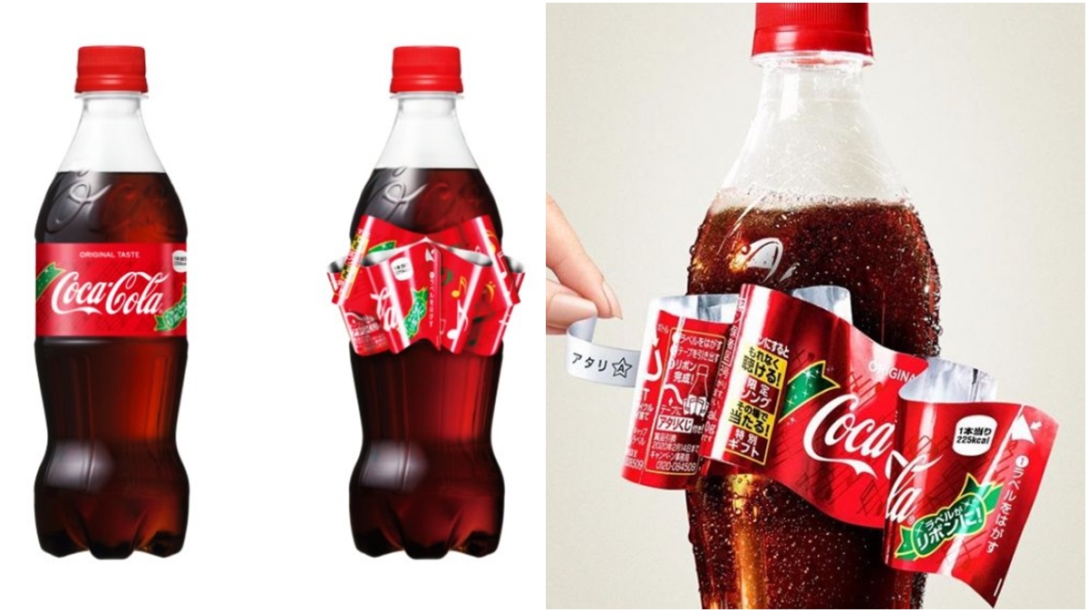 ▼日本可口可樂一直在口味和包裝上求新求變。往年聖誕節推出的「蝴蝶結包裝」,讓人早早就感受到聖誕節的氣氛。只要單手拉開塑膠標籤,就能變成華麗的蝴蝶結,整個瓶子就能成為一份超棒的禮物。