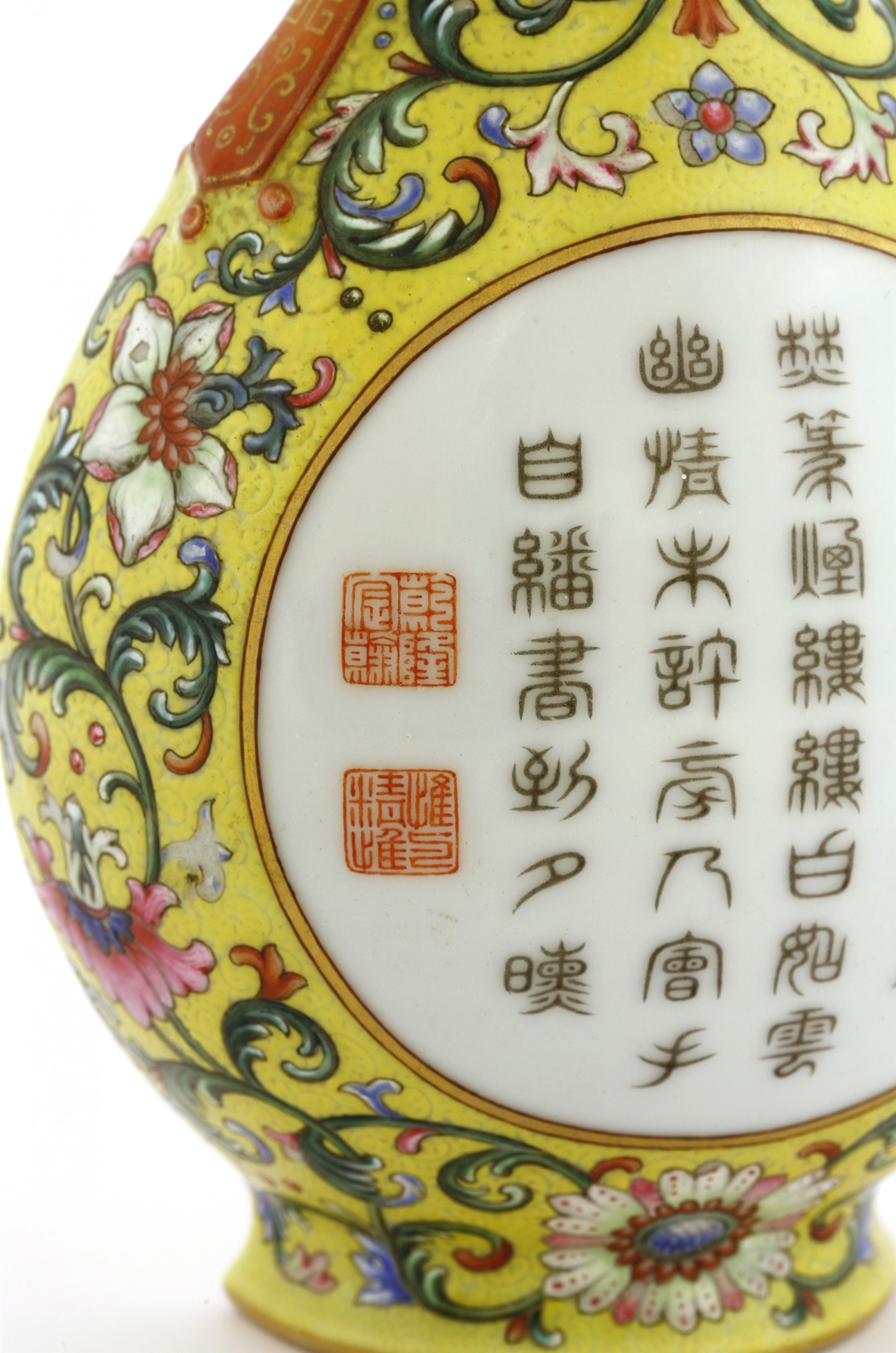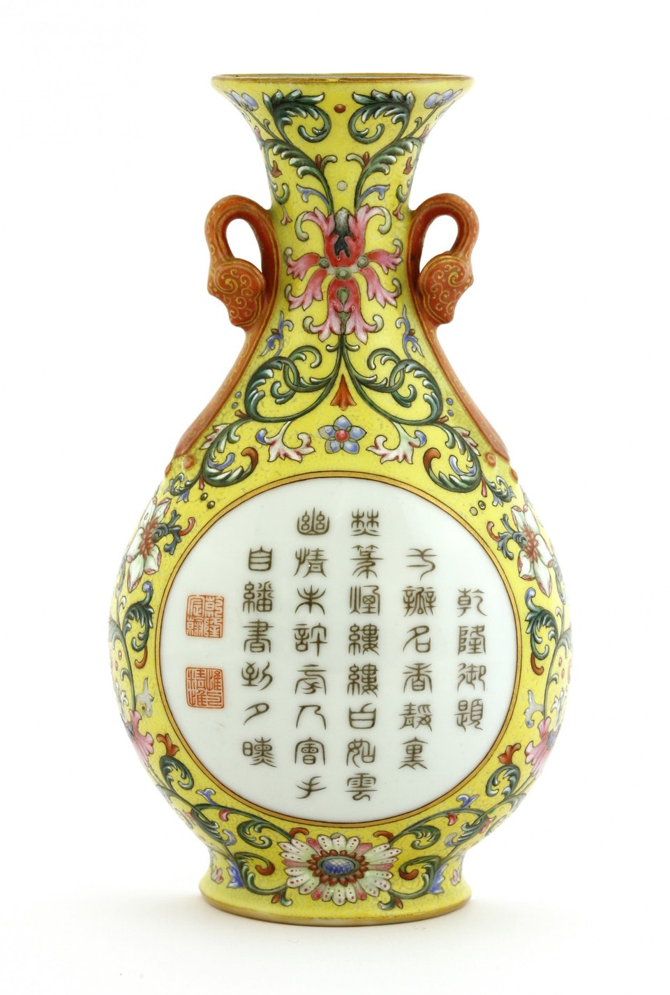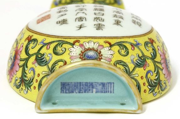 ▼於是他先將這個花瓶從 eBay 下架,帶到藝術品拍賣公司「Sworders」進行鑑定,最後專家告訴他,這個花瓶的名字是「清乾隆黃地軋道洋彩如意耳開光御題詩紋壁瓶」,是18世紀中國清朝乾隆皇帝的傳家寶!