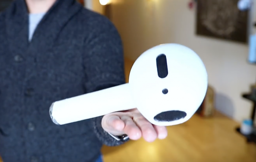 ▼AirPods Pro 的售價高達7990,對許多來說也是一筆不小的負擔,如果可以用更便宜的價格購買到 AirPods 當然更好!如今就有 YouTuber 在頻道「Unnecesarry Inventions」(沒必要的發明)當中,發布了這款左耳專用的超巨大 AirPods !
