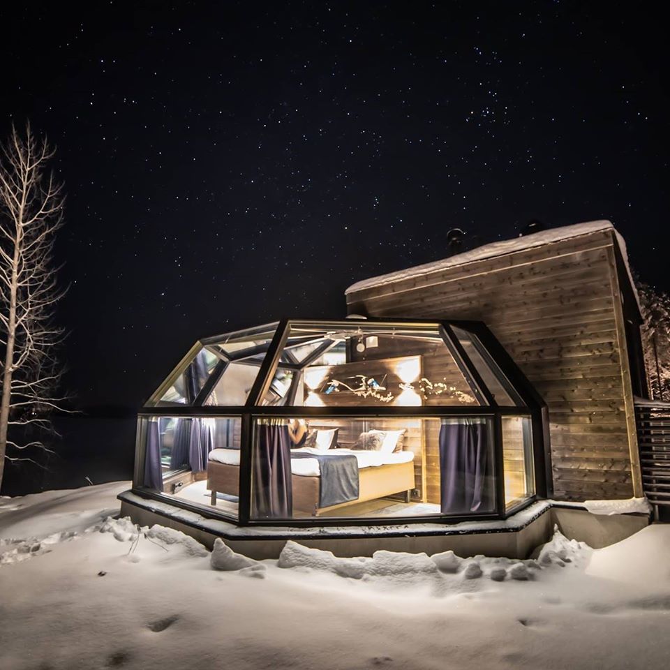 夜燈是極光!極致夢幻「玻璃式度假小屋」 想在眼中保存一生的美景❤