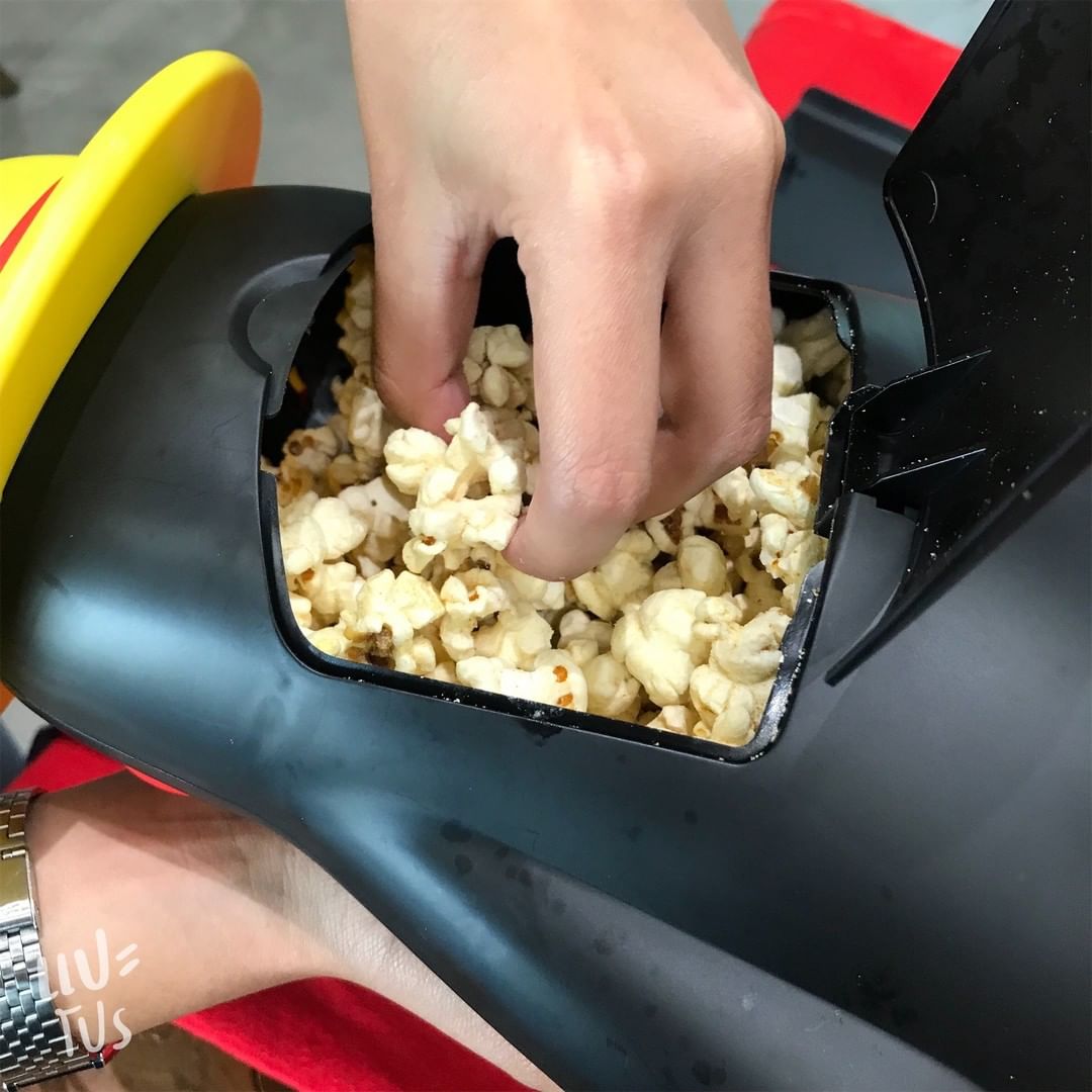 ▼米花桶的蓋子是開在背後,看起來雖然「修誇怪怪」,不過看在熊本熊這麼勾錐的份上就不計較了。