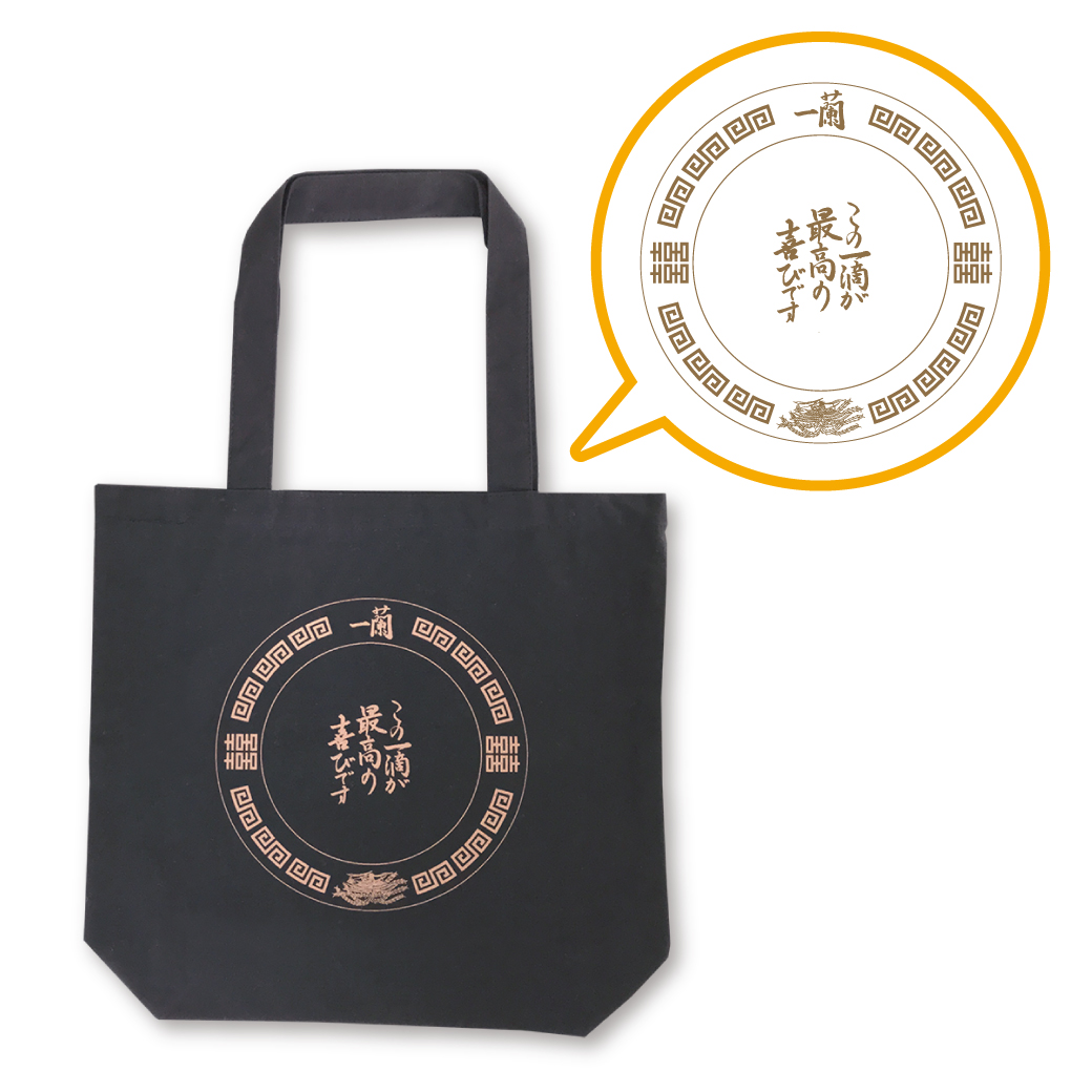 ▼黑色款上面印著一蘭的招牌「碗底」,是只有喝完最後一口湯的人才能看到的誠摯感謝,這次直接可以揹著走了~黑色提袋搭配金邊的字樣,看起來真的就像一蘭的拉麵碗一樣,非常有質感。