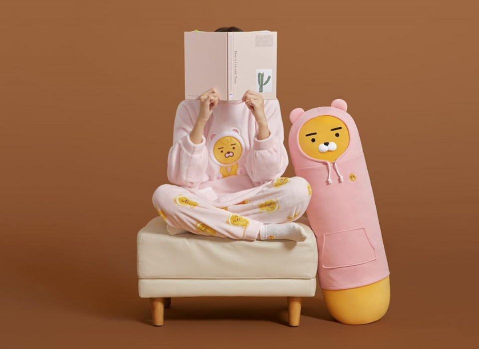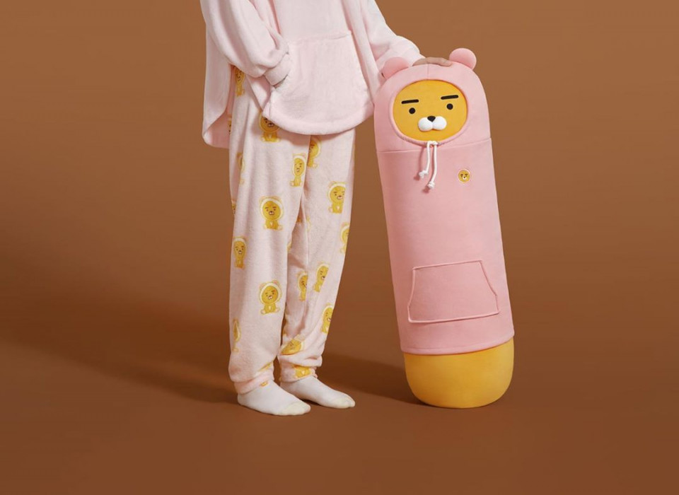 ▼Kakao Friends萊恩長形抱枕:萊恩變成了長條形,還穿著粉嘟嘟的帽T。為了適應萊恩的體型,連帽T都是長條形的。頭上的耳朵讓可愛程度翻倍~