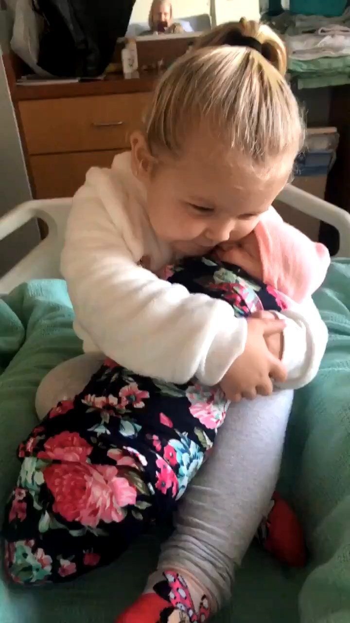 2019年11月21日很多父母生下二胎後,會擔心大寶不開心。美國賓夕法尼亞州媽媽Heather Conley沒有這樣的煩惱。她剛剛生下小女兒Cora,3歲的大女兒Molly到醫院看妹妹時,超溫柔的表現讓人覺得很窩心。
