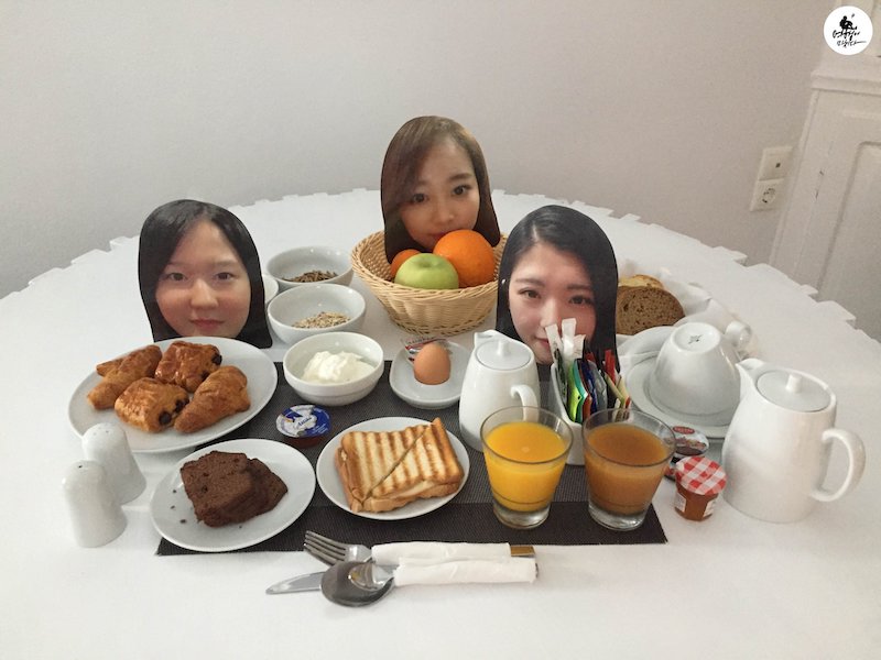 ▼本來說好的歐洲行…3位閨蜜卻因為臨時有事,紛紛取消行程,獨自出發的Soo Yeon就印了3位閨蜜的大頭相片,一起踏上旅程!