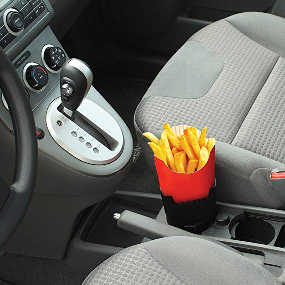 ▼這款薯條盒是汽車零配件品牌Pilot Automotive的產品,品質很好,用起來也很方便。將它安裝在汽車杯架插槽裡,或者汽車控制台上,就能用來放置薯條或其他小物了。