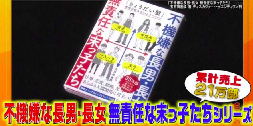 ▼最匹配的組合是什麼呢?五百田達成先生表示,戀愛時人們喜歡追求自己身上沒有的特質。但結婚是要跟另一個人長久相處,如果差別太大,很容易產生磨擦。所以最匹配的對象應該是跟自己在家中排行相同的,也就是長子配長子、老么配老么。