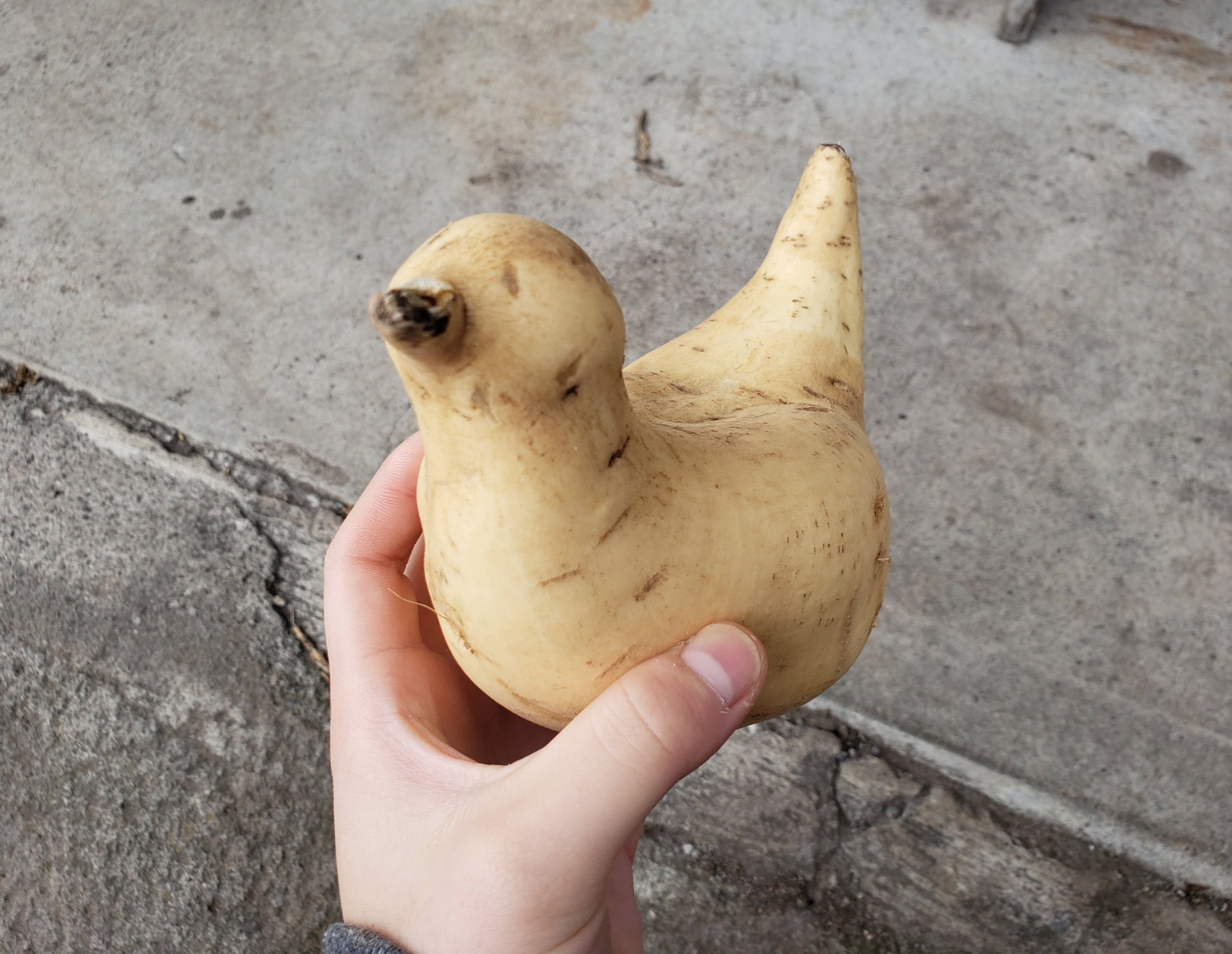 這顆馬鈴薯到底經歷過什麼?完全沒想過馬鈴薯竟然可以長成這樣的形狀!遠看肯定會以為這是一隻真鳥!你有看過比這個更奇特的形狀嗎?