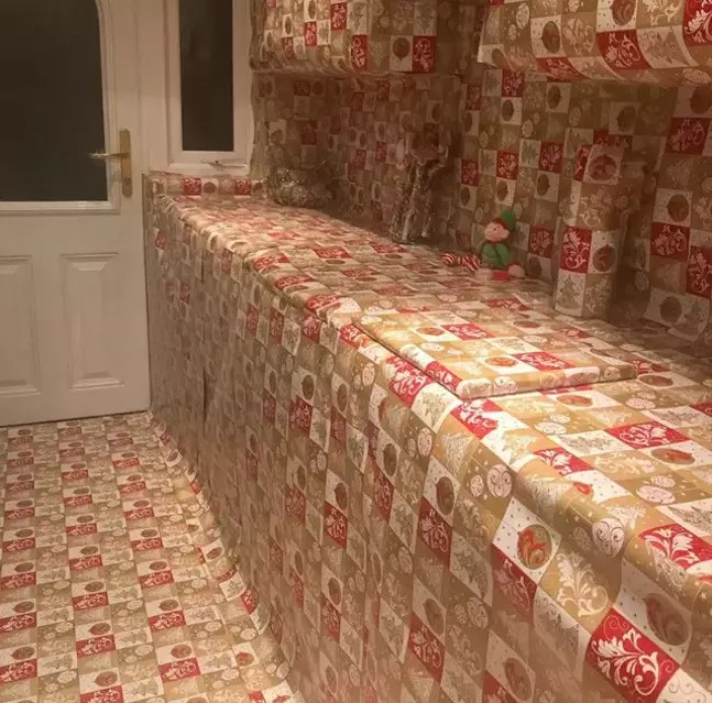 ▼不過聖誕節的惡作劇也應該適可而止,數年前就有一位丈夫將整個廚房用禮物紙「包裝」得美美的,讓回到家的妻子非常傻眼,最後兩個人竟然鬧得離婚收場!