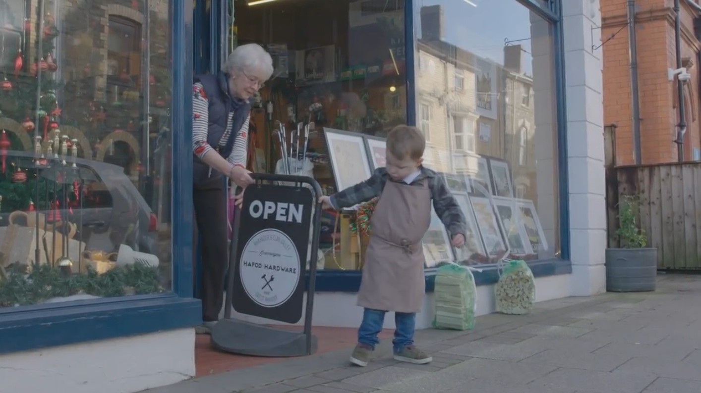 ▼原來這支廣告,是Hafod Hardware 五金行的老闆 Tom Jones 和兩歲的兒子 Arthur 共同出演的!因為兒子也經常回到店裡幫忙,因此他想出了這個仿佛「穿越時空」的表達方式,希望大家更重視在地小店的經營模式,因為比起大型商場,這些小店更注重人與人之間的互動和溫度!