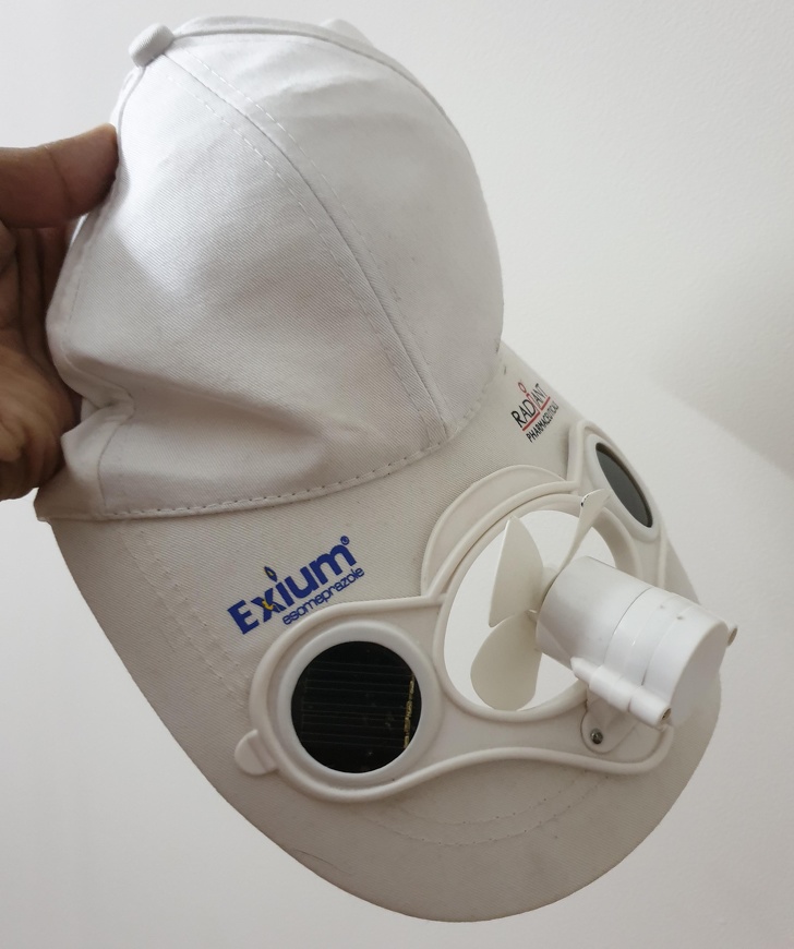 ▼帽子上帶有小風扇。