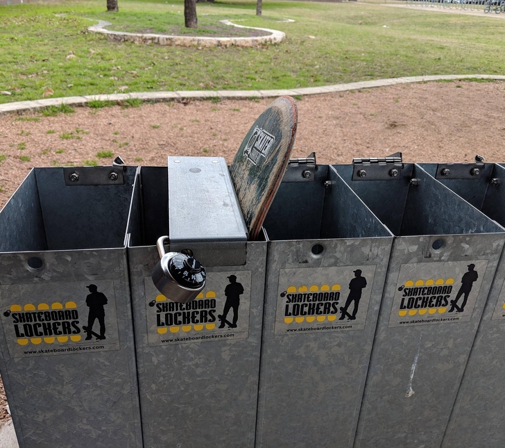 ▼這間中學有「滑板儲存櫃」。