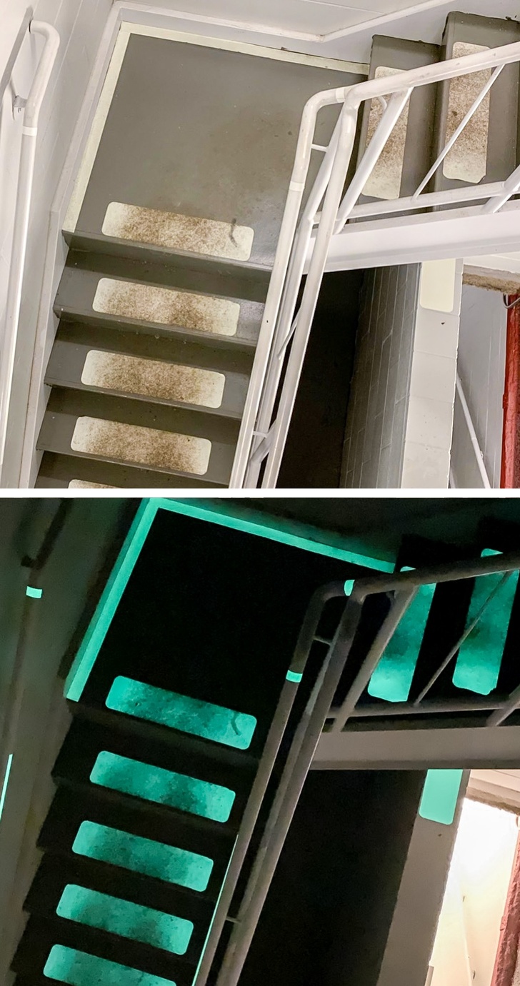 ▼樓梯的台階在黑暗的環境中能發光。