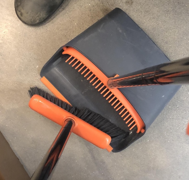 ▼掃地的時候可以把苕帚上的垃圾弄下來。