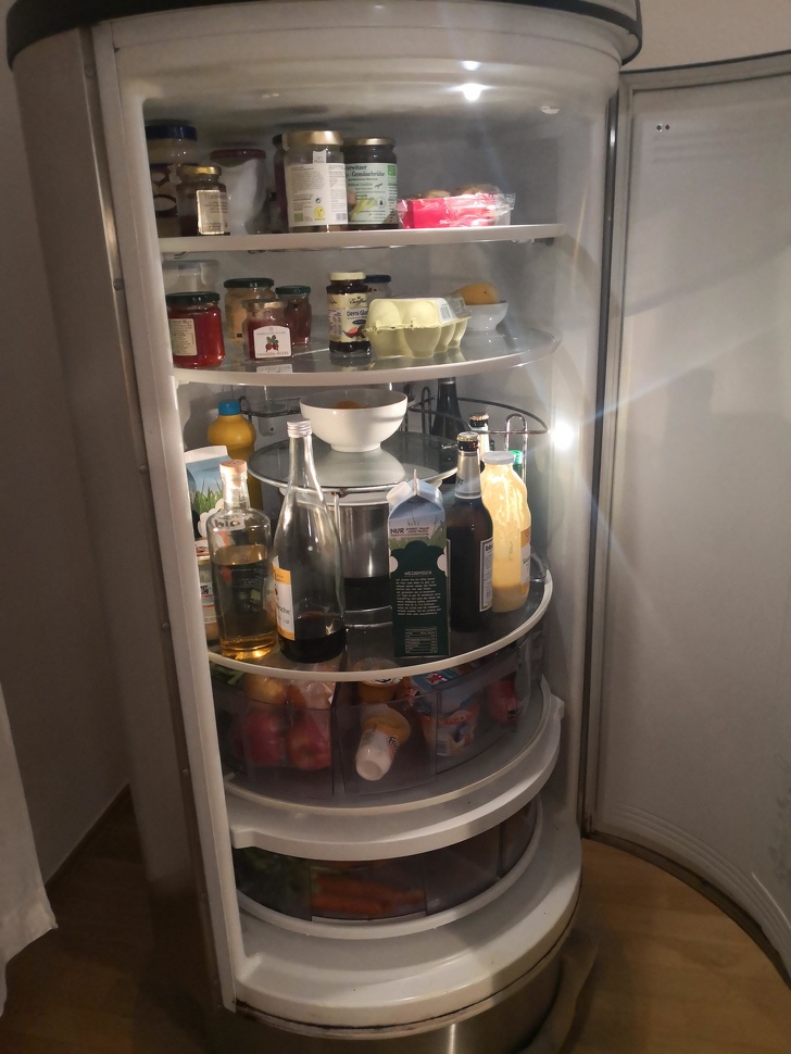 ▼冰箱中的置物架能夠旋轉,存取物品都很方便。