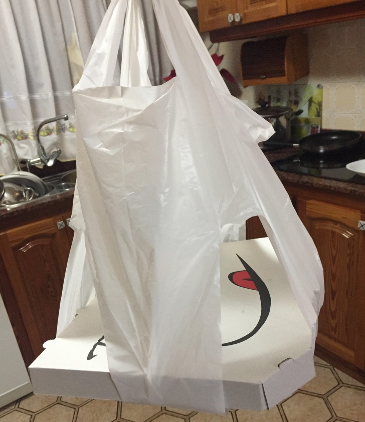 ▼專門為裝披薩盒而設計的袋子。