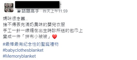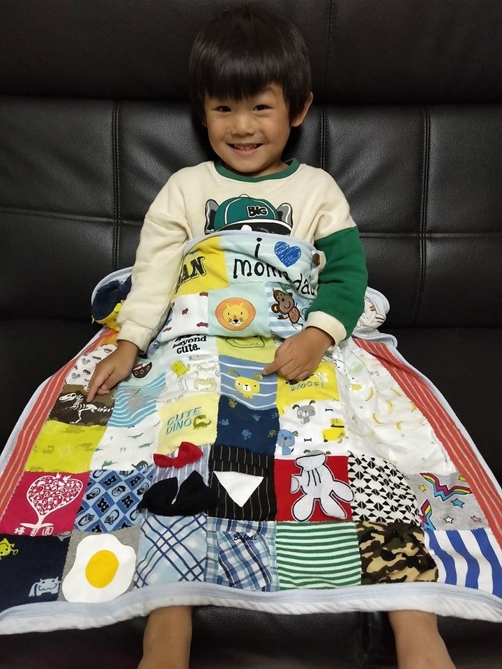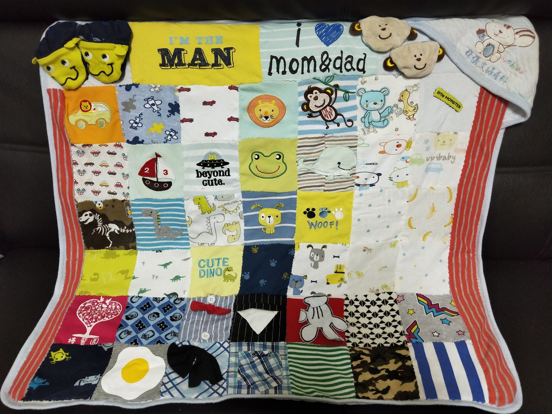 ▼原po在文中表示,自己是個很念舊的人,不捨得丟掉小孩穿過充滿了「奶味」的嬰兒衣服,於是乾脆將這些衣服做成了拼布小被被,送給小孩當成紀念!