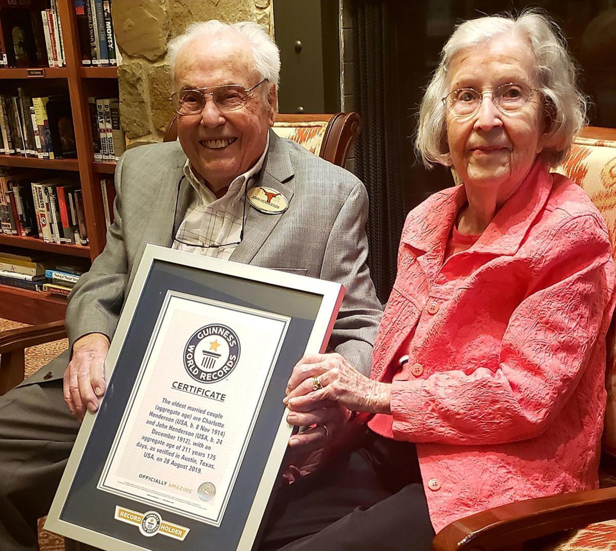 2019年12月18日美國德州奧斯汀(Austin)有一對長壽的夫婦,今年12月15日,他們慶祝了結婚80週年的紀念日。他們也是世界上最年長的夫婦,Charlotte Henderson已經105歲,John Henderson為106歲,他們的年齡加起來足足有221歲啦~