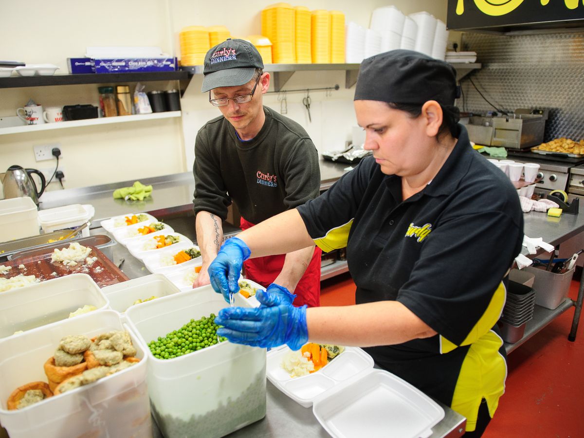 ▼英國男子路易斯(Chris Lewis)在朗達區 (Rhondda)開了一間名叫Curly's Dinners的便當店,14年來只在星期天營業。
