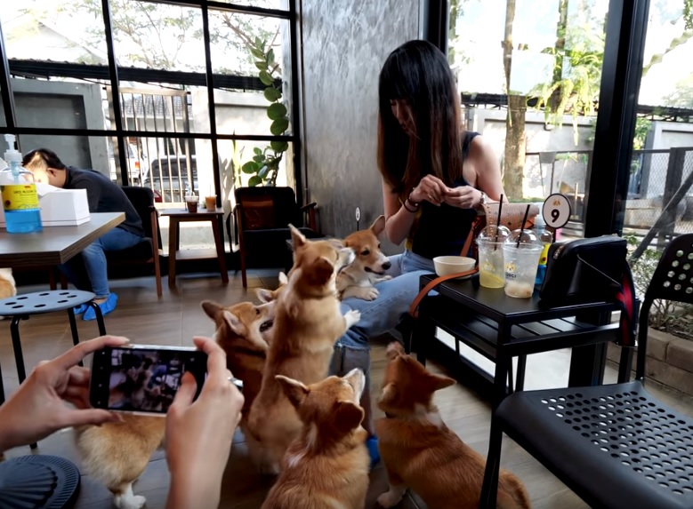 ▼據說「Corgi in the Garden」的店主本來沒準備開寵物咖啡廳,但家中的柯基犬懷孕了,12隻狗狗不好安排,那就到咖啡廳來上班吧。