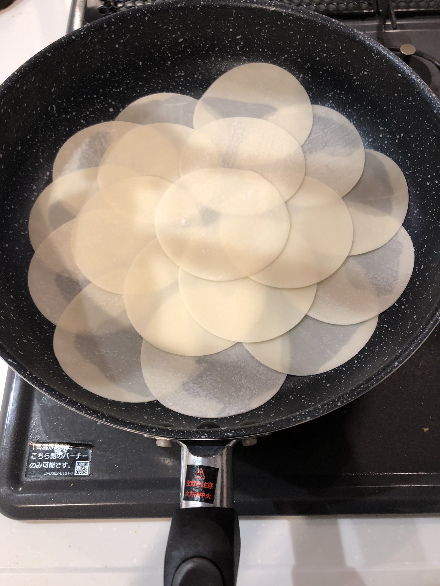 ▼日本網友胡桃(@silver_egg_77)不久前就在推特上分享了自己的「懶人煎餃做法」,引起了許多網友的關注和討論!原來他表示因為天氣實在太冷,根本沒有多餘的心力來包餃子,於是想出了這個超簡易的方式!首先就跟下圖一樣,在平底鍋上鋪滿適量的餃子皮!