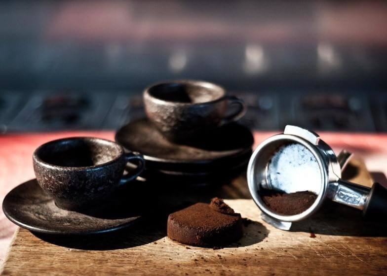 ▼Kaffeform會將咖啡渣進行清洗和乾燥,然後加入天然樹脂、櫸木屑和植物纖維,調和成適當的比例,送進機器中處理。一般來說,6杯咖啡渣就能壓縮成一套杯碟。這些用咖啡渣製作的杯碟非常環保,100%能夠生物降解。