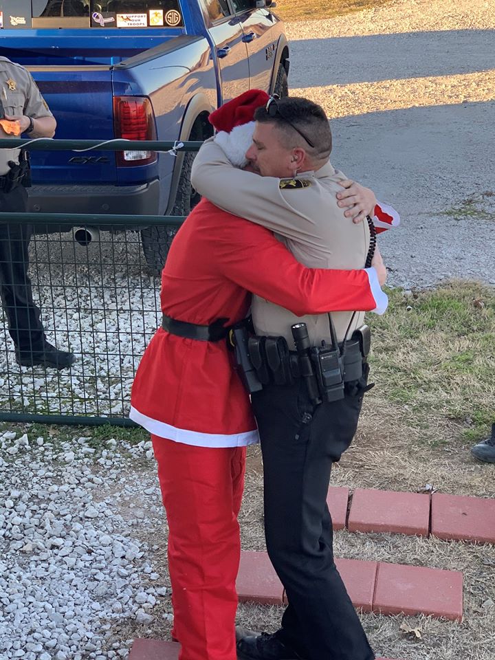 當兵兒扮「聖誕老人」驚喜現身 警察老爸一認出就抱緊:2年沒見你了