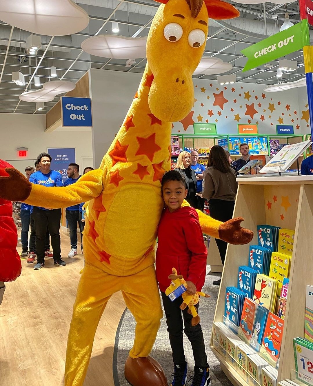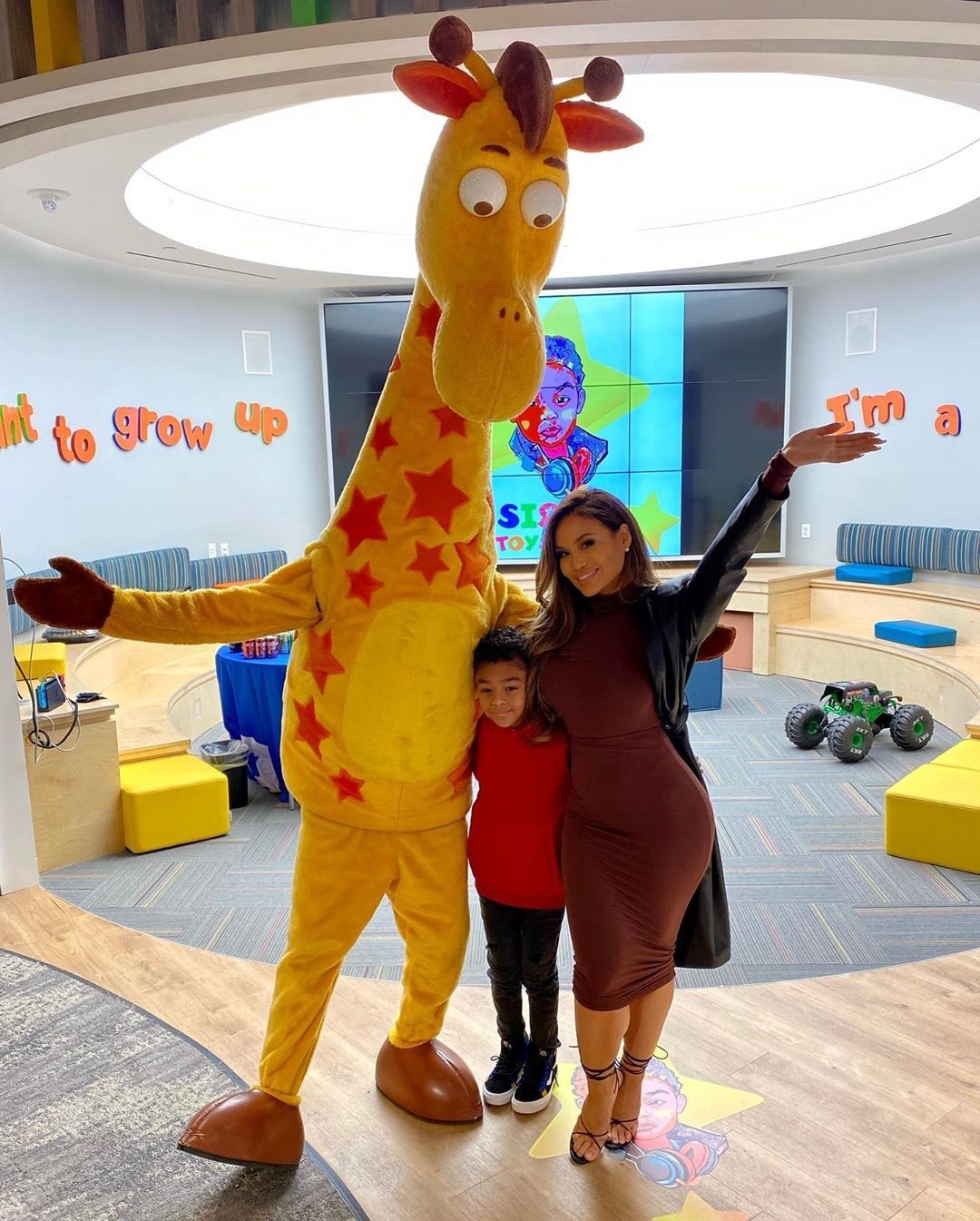 ▼Sire還跟玩具反斗城的吉祥物長頸鹿Geoffrey一起玩,臉上一直掛著笑容,顯然對這份聖誕節禮物非常滿意。