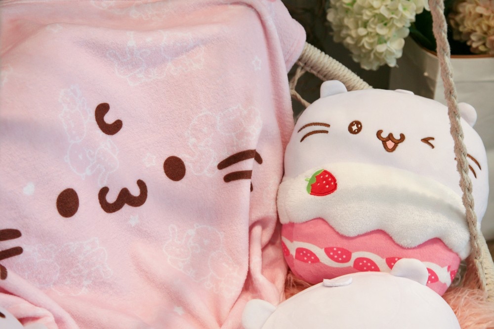 ▼接著是「麻吉草莓蛋糕」的造型抱枕毯!