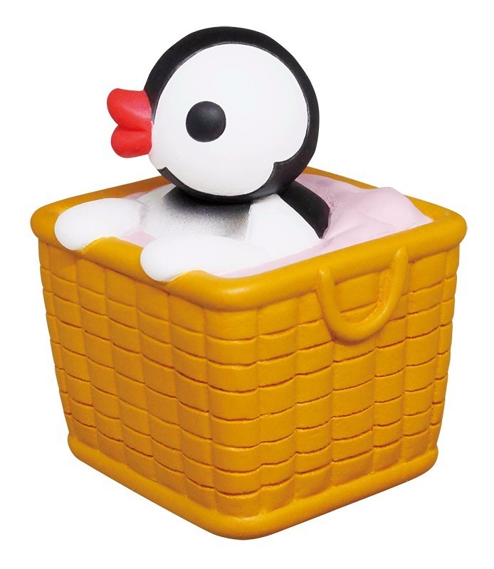 ▼小企鵝跑到籃子裡啦,它要洗泡泡浴嗎?
