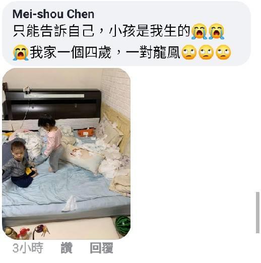 網友們看到這張照片都很懂媽媽的感受:「媽媽白眼翻的非常自然」、「媽媽表情100分。太傳神了」、「這位媽媽加油,寶貝的笑容很燦爛」、「我的雙胞胎 輪流睡覺起來 我也根本沒睡飽過」、「這個有點生動了 哈哈哈哈」。