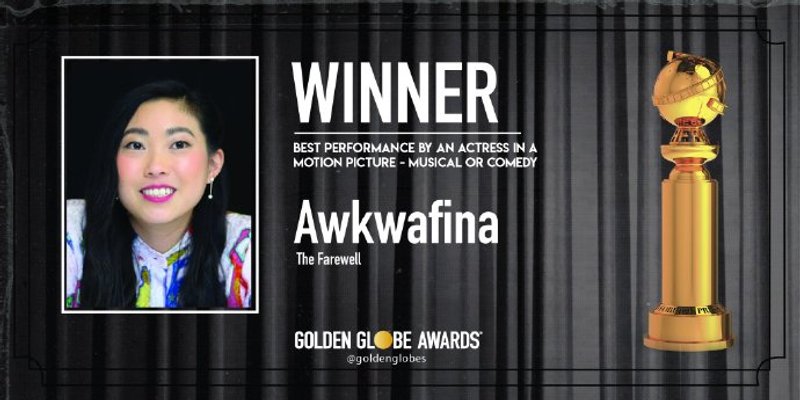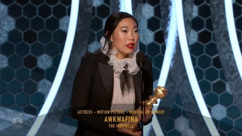 Awkwafina wins and accepts her Lead Actress Awardl! First woman of Asian descent! ❤️#GoldenGlobes pic.twitter.com/P9h7tIWcRd
