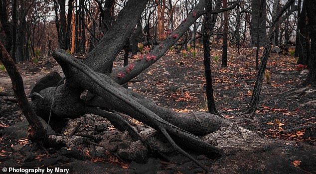 ▼野火過後,森林一片頹圮,那場景讓人憂心。但Voorwinde捕捉到了寂寥中的希望,她說:「我想讓更多人看到這些,大自然在告訴我們,一切都會好起來。」